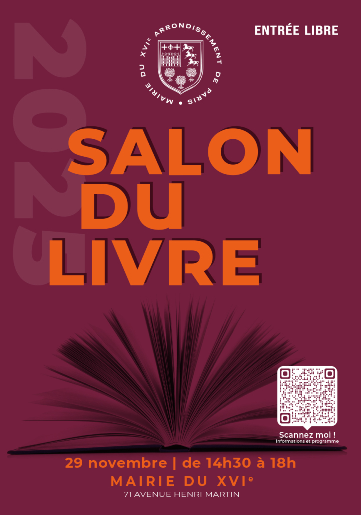Le traditionnel Salon du livre de la Mairie du XVIe (35e édition) se tiendra le samedi 29 novembre de 14 h 30 à 18 heures dans la salle des fêtes de la Mairie du XVIe arrondissement.